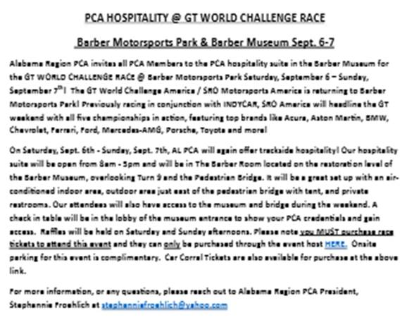 7:30 AM – 9:00 AM MANDATORY TECH INSPECTION & Registration9:30 AM – MANDATORY DRIVERS MEETING & Course Walk (If you miss the Drivers meeting OR Course Walk through you will NOT be allowed to participate. This is for Safety & PCA Insurance Reasons. No Exceptions.)